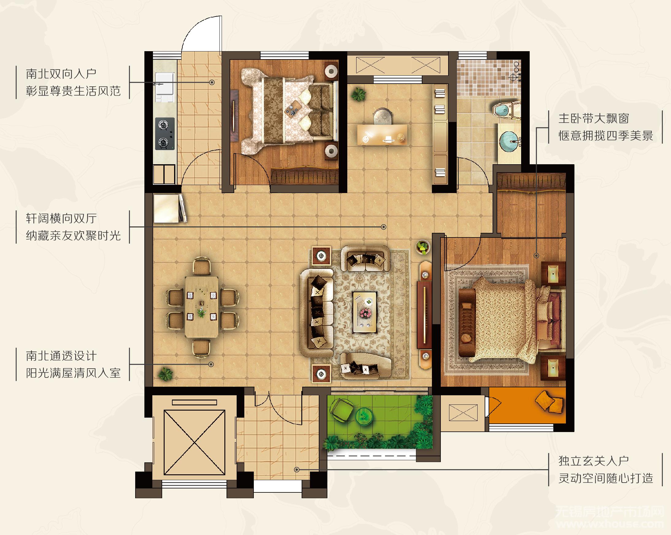 3室2厅0卫 建筑面积约:108.0㎡B户型