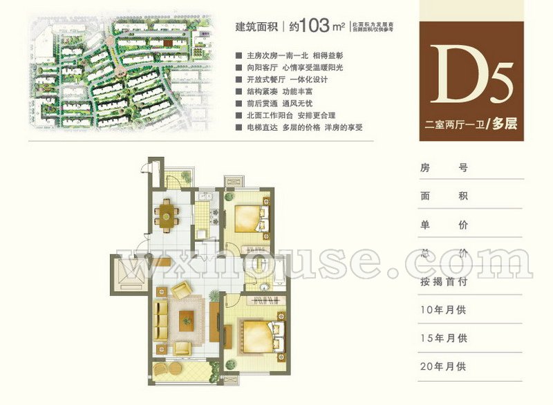 2室2厅0卫 建筑面积约:103.0㎡多层D5户型