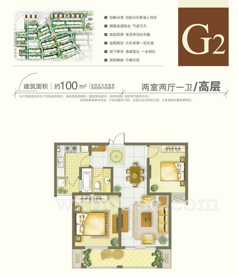 2室2厅0卫 建筑面积约:100.0㎡高层G2户型