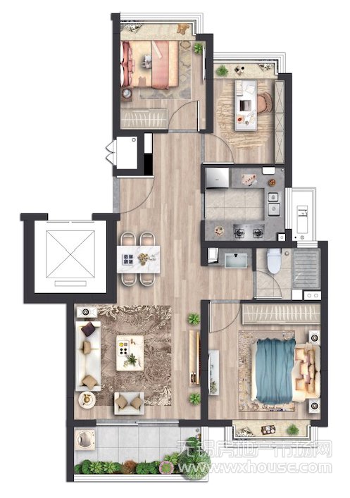 3室2厅1卫 建筑面积约:82.0㎡B户型山林语