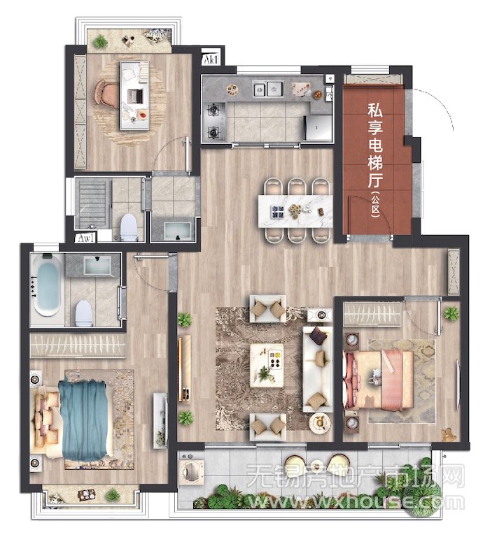 3室2厅2卫 建筑面积约:89.0㎡A户型观峦境