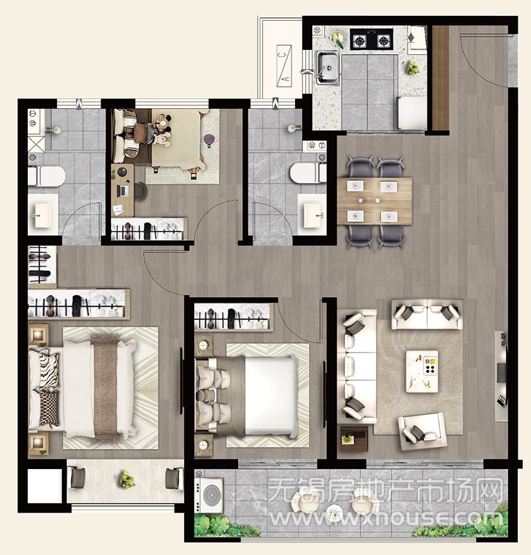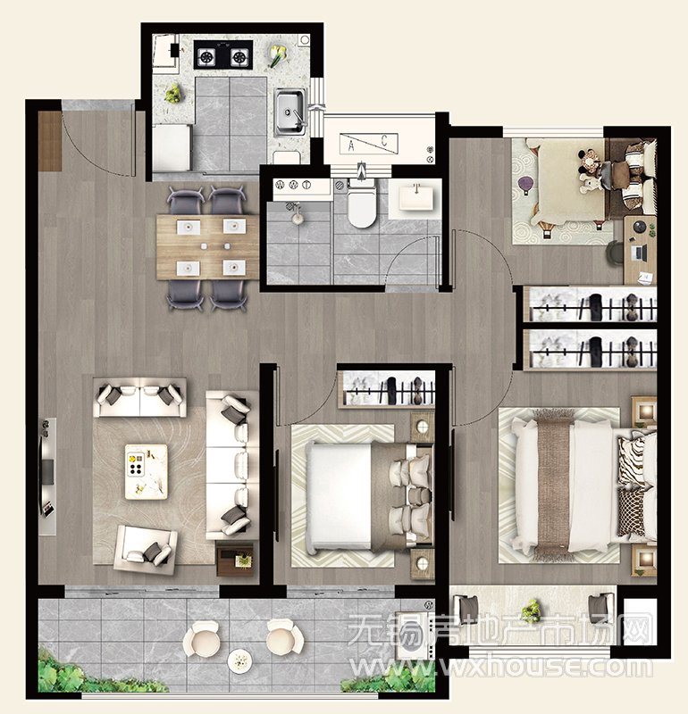 3室2厅1卫 建筑面积约:96.0㎡B户型塞纳阳光