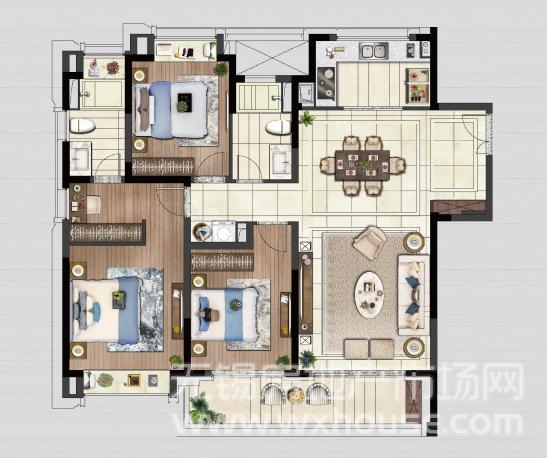 3室2厅2卫 建筑面积约:111.0㎡111㎡户型