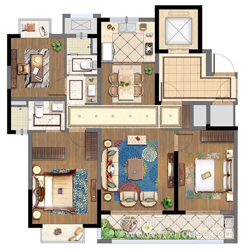 3室2厅2卫 建筑面积约:124.0㎡G户型