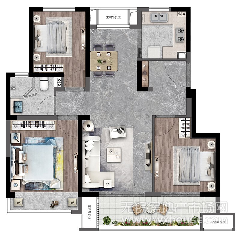 3室2厅1卫 建筑面积约:89.0㎡89㎡户型
