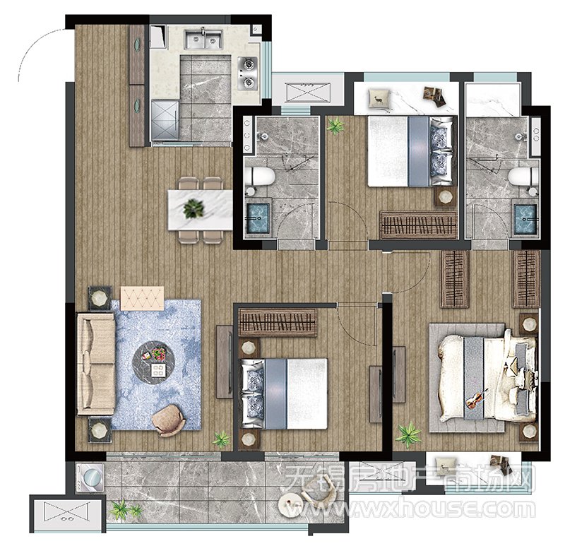 3室2厅2卫 建筑面积约:115.0㎡D户型蓉御
