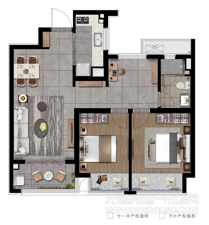 3室2厅2卫 建筑面积约:108.0㎡108㎡户型