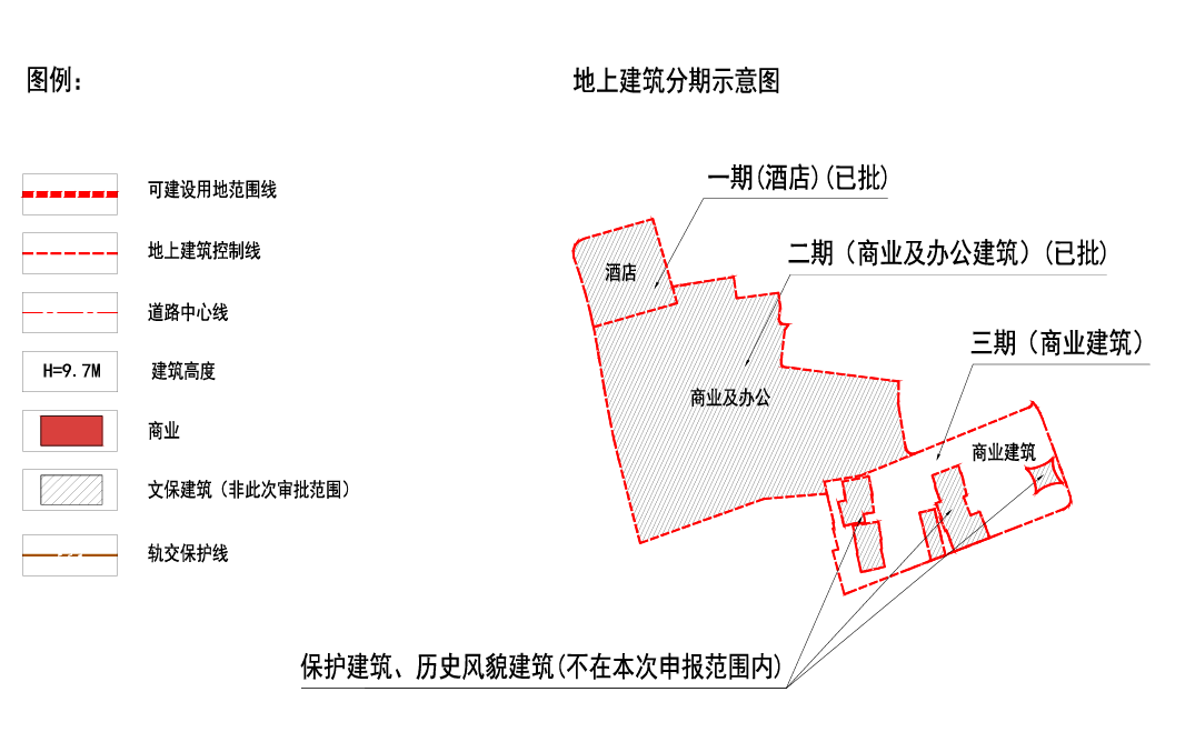 项目一期为五星级酒店,二期为商业及办公建筑,三期为商业建筑。