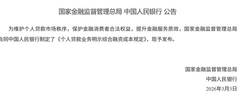 贷款人应当在营业场所、官网等渠道清晰披露借款人正常履约情形下的个人贷款综合融资成本上限。