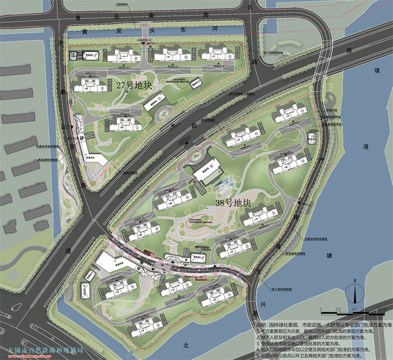 项目总可建设用地面积约72038.1平方米(其中27号地块约22364.6平方米,38号地块约49673.5平方米),总建筑面积约16.5万平方米(其中27号地块约5.1万平方米,38号地块约11.4万平方米),地上建筑面积约11.5万平方米(其中27号地块约3.5万平方米,38号地块约7.9万平方米),总容积率约1.6,绿地率约30%。