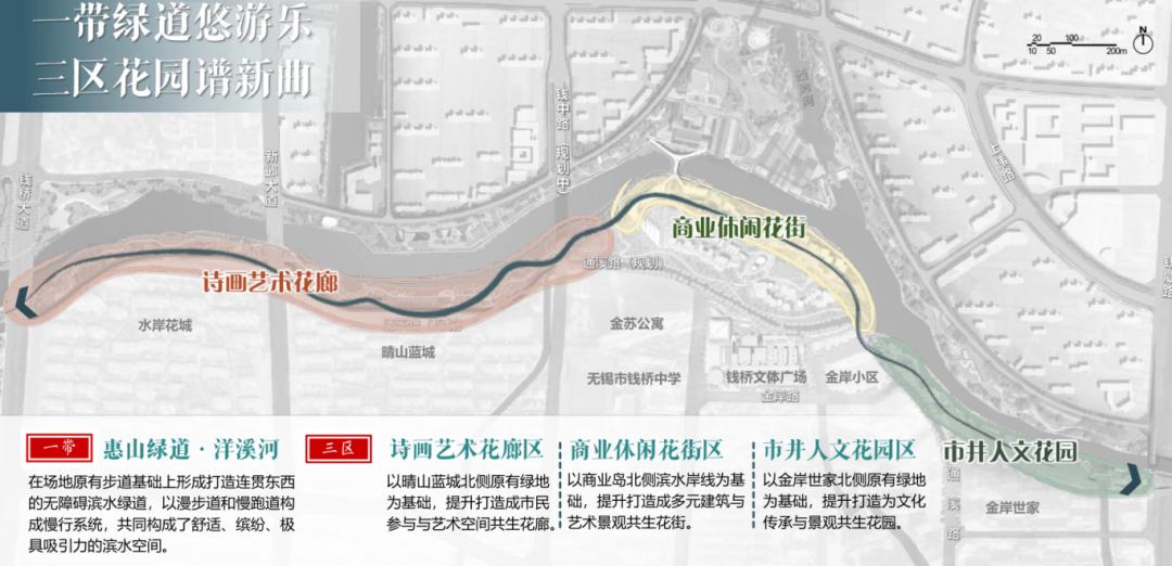 全面启动的洋溪河幸福水岸建设,项目实施范围约12.6平方公里,滨水岸线11.2公里,打造钱桥文化源、锡钢梦工场、龙栖湾枢纽、职教创新谷四大特色段。