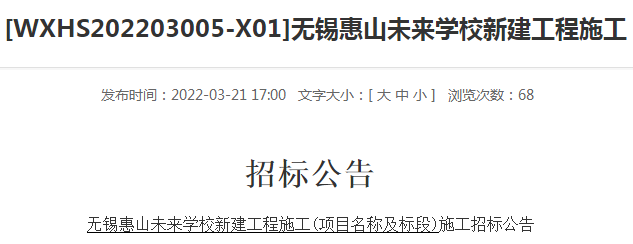 近日,无锡惠山未来学校新建工程施工招标公告发布,项目预计将于5月1日开工,明年底竣工,投资4.8亿!