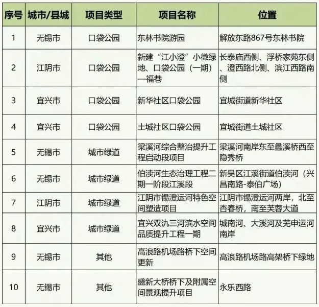 其中无锡(包含江阴、宜兴)上榜10处并被列入省政府为民办实事项目中。
