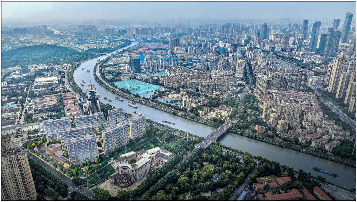 该项目占据先天地理优势,紧邻京杭大运河,四代住宅的露台设计与运河景观形成完美呼应。
