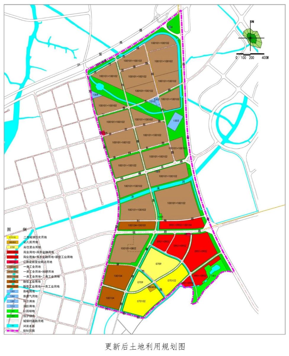 (3)优化用地功能,将新燕路与金城快速路交叉口东北侧加油加气站用地、公共交通场站用地、商办混合用地/科研设计用地/娱乐用地调整为新型工业用地和公园绿地。