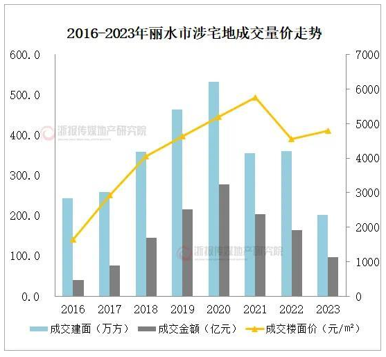就拿丽水来举例吧,2023年丽水土地成交面积下降44%,成交金额下降了41%。