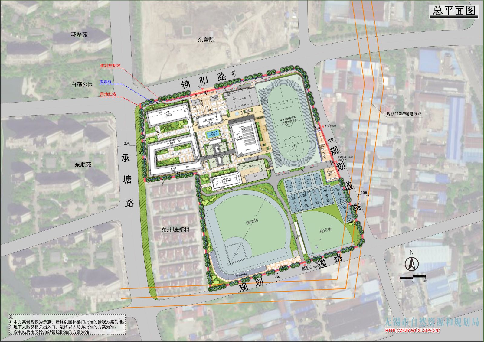 无锡市东北塘中学(锡山体校)新建工程规划设计方案批前公示
