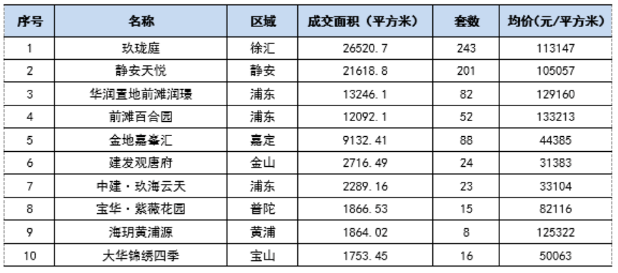 上海商品住宅成交TOP10(10月16日-22日) 来源:网上房地产(上海中原地产整理)
