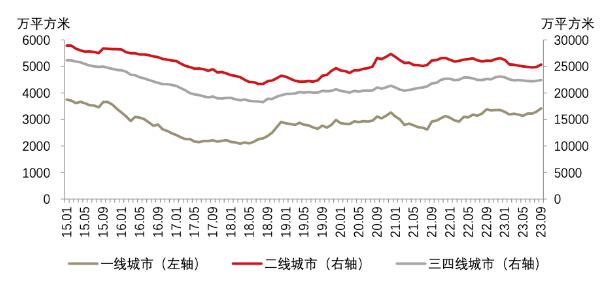 具体到城市能级来看,截至1月底,全国百城中一、二、三四线的新建商品住宅库存总量分别为3480万、24406万和22369万平方米,环比增速分别为-2.5%、-0.7%和0.0%,同比增速分别为6.0%、-6.9%和-2.5%。总体上,一线城市供货能力相对强,而二三线城市偏弱。