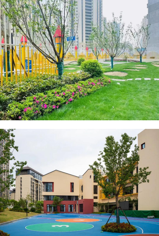幼儿园还种植了绣球、樱花、石榴、无花果等多种花卉与果树,积极为孩子打造一个自然生态又充满童趣的园所空间。相信每一个入园的孩子,都会喜欢这所新幼儿园,在这里快乐游戏与生活。