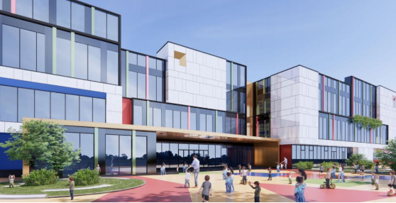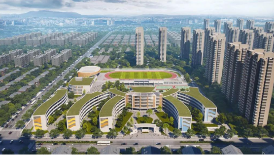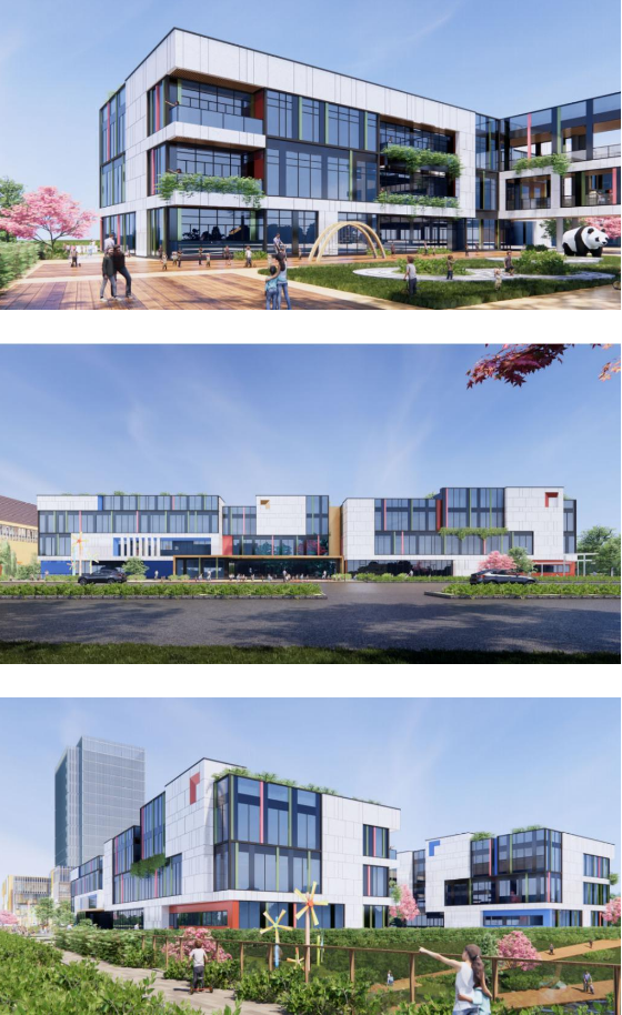 滨江西地块配套幼儿园位于山河路南、和祥路东,总建筑面积约 2.3 万平方米。