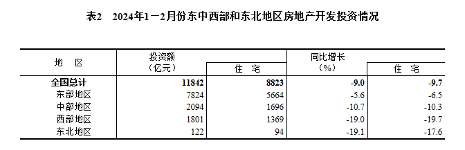今年前两月,全国房地产开发投资11842亿元,同比下降9.0%(按可比口径计算)。其中,住宅投资8823亿元,下降9.7%。