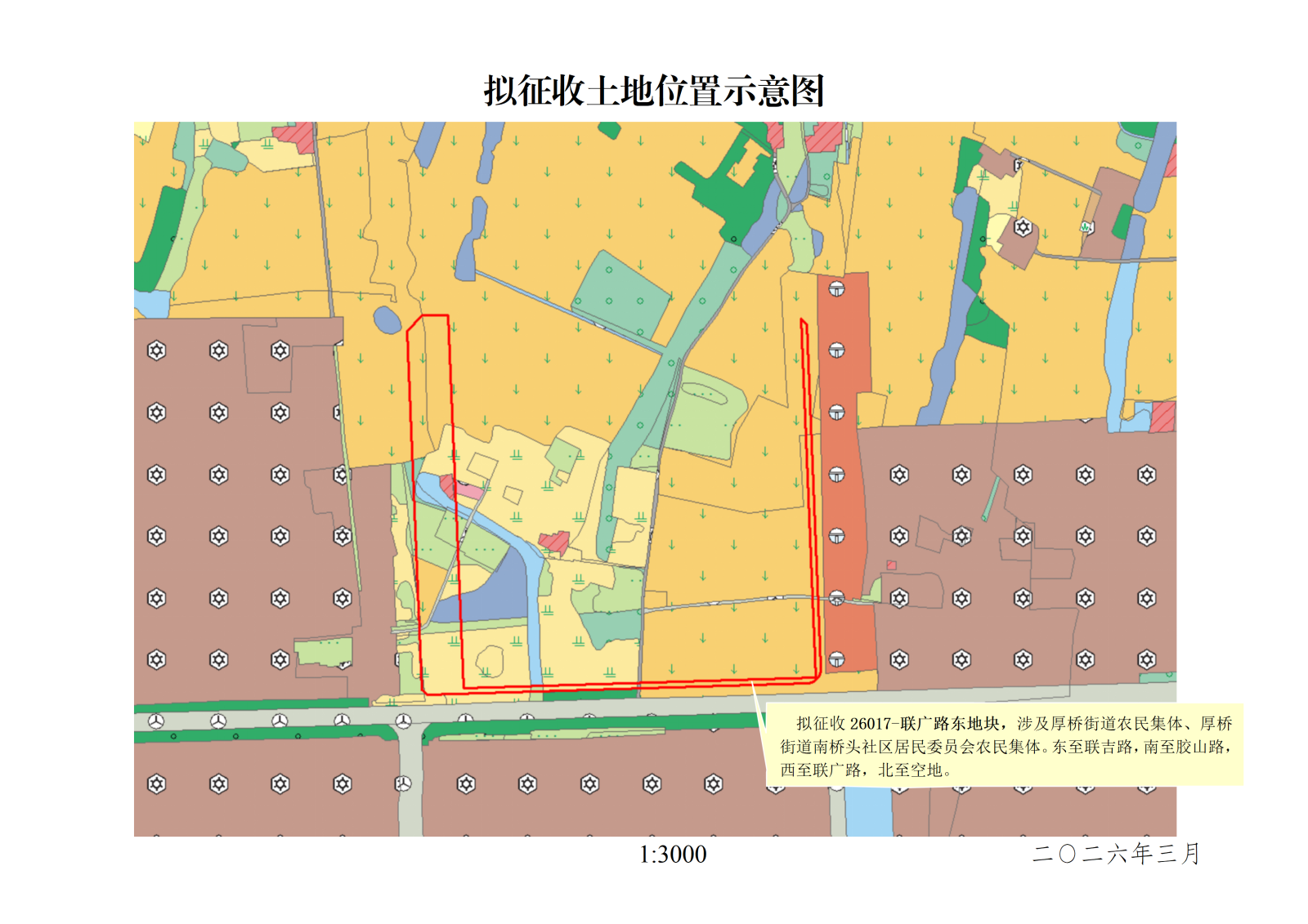 本次拟征收土地位于锡山区厚桥街道农民集体、厚桥街道南桥头社区居民委员会农民集体范围内。拟征收土地位置详见附图。