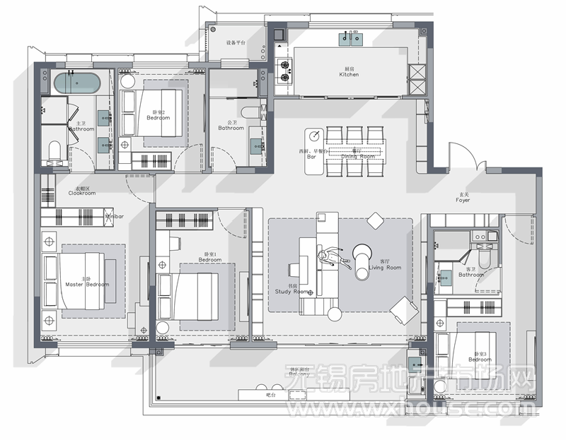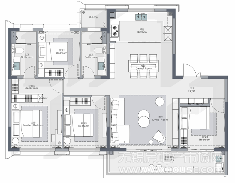 3室2厅2卫 建筑面积约:241.0㎡B户型观星