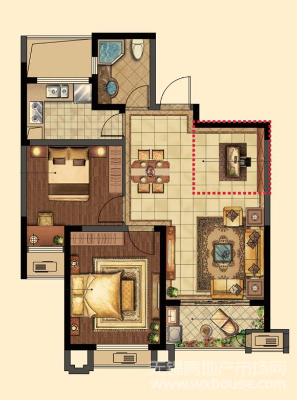 3室1厅0卫 建筑面积约:85.0㎡B户型